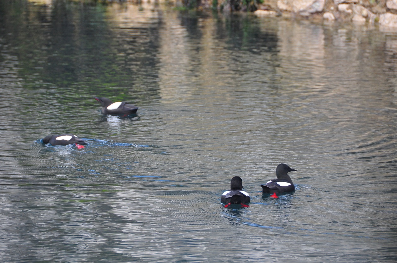 Guillemots in de haven van Glenarm.